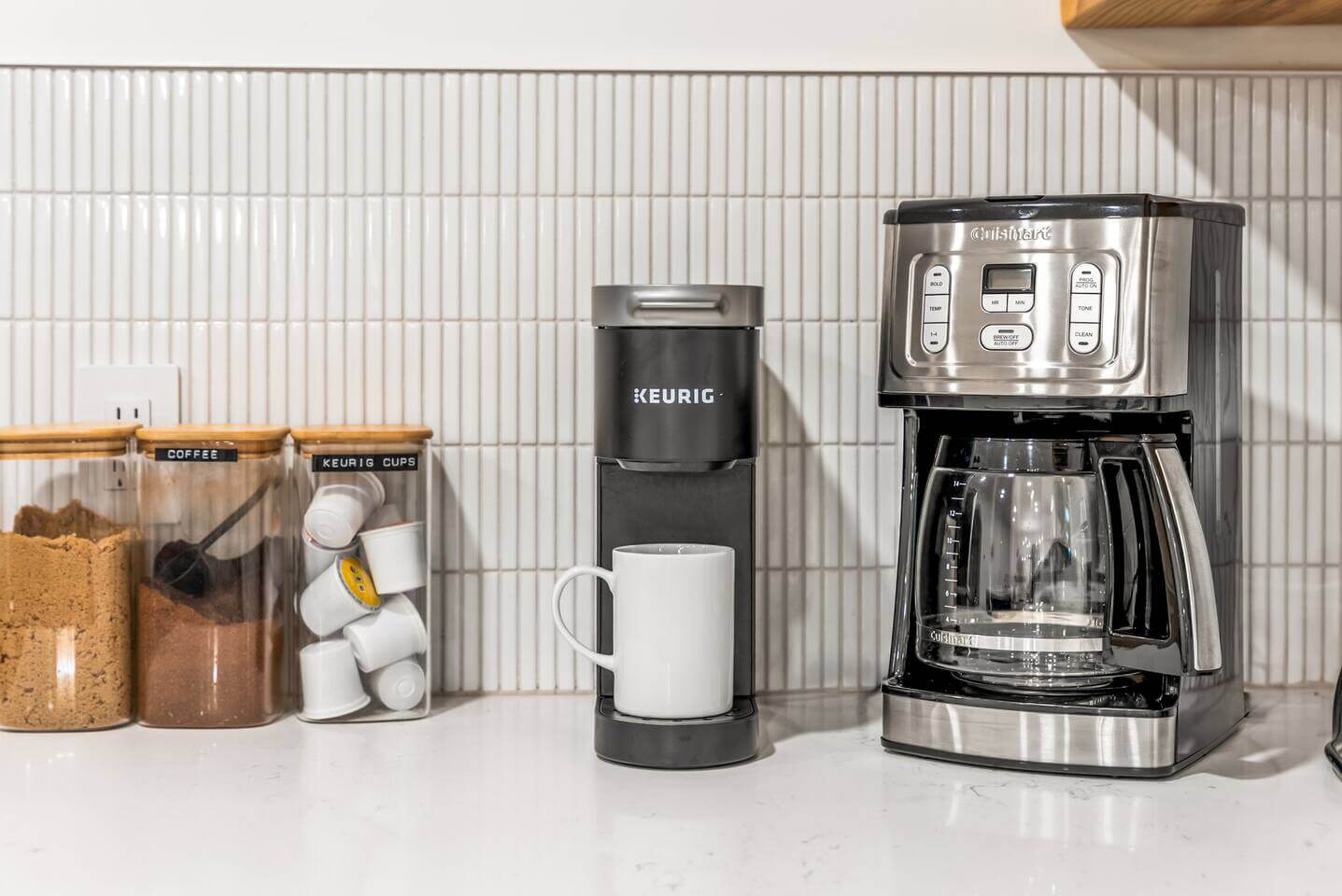 Recently redesigned, this expansive, open-concept kitchen is a culinary paradise, ready for your gourmet creations. We have a coffee maker, Keurig, toaster, microwave, pots, pans, basic cooking spices, utensils, and other cooking essentials.